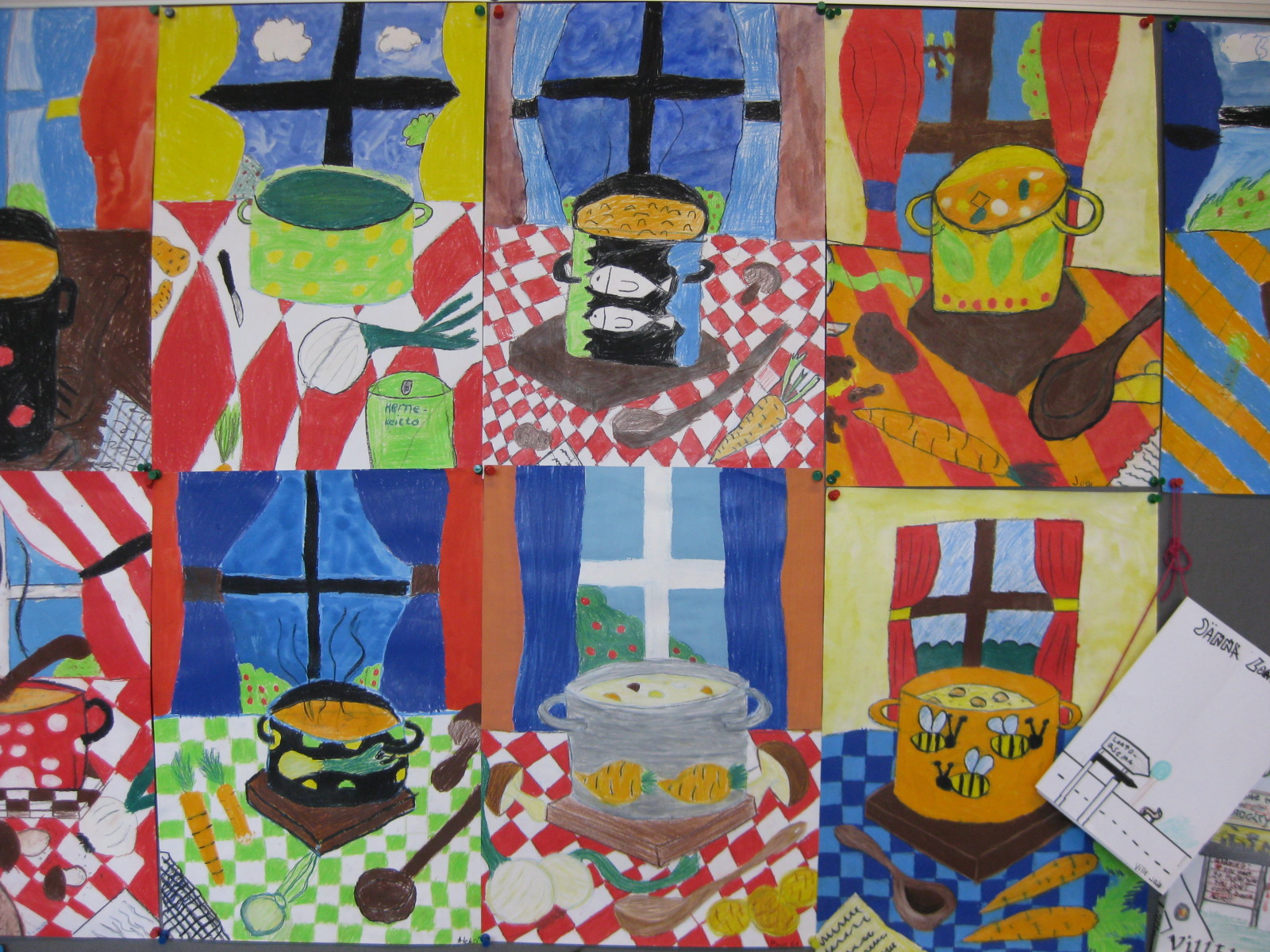 Täytyy sanoa, että VAU! Jakson lopetuksena tehtiin sitten omakuvat opitun perusteella. Oppilaat ovat kehittyneet tosi paljon! Jos näitä vertaa vitosen syksyn vahaliiduilla tehtyihin omakuviin, kehitys on huima. Oppilaat itsekin sanoivat, että oppivat paljon. Oppilaista otettiin kuvat digikameralla ja kuvat tulostettiin mustavalkoisina. Kuvat toimivat malleina. Kun omakuva oli valmis, sai piirtää toisten kuvista kasvokuvan, joten harjoitusta tuli paljon (pitää ladata nekin työt tänne)